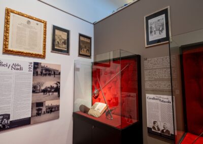 Particolare rilievo, nel museo, hanno alcuni personaggi storici per l’importanza che hanno avuto nello sviluppo e per i successi della scherma italiana. Angelo Malevolti, che con le sue imprese e col suo trattato ha segnato la svolta verso la scherma sportiva; Giuseppe Radaelli e Masaniello Parise, che hanno diretto in Italia le Scuole che hanno formato schiere di importanti maestri; Agesilao Greco, col fratello Aurelio, che ha segnato con le sue vittorie e con i suoi trattati la scherma a cavallo dei secoli ‘800 e ‘900; Edoardo Mangiarotti, il più famoso e medagliato di una famiglia di eccellenti schermidori, che comprende il padre e maestro Giuseppe, oltre alla madre Rosetta, e ai fratelli Dario e Mario; Nedo Nadi, con il suo prezioso archivio, unico schermidore al mondo capace di vincere cinque medaglie d’oro nella stessa Olimpiade, seguito a ruota dal fratello Aldo.