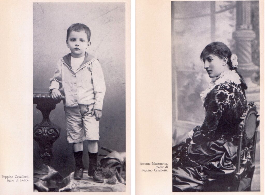 Stesso copione molti anni dopo, con l’attrice Assunta Mezzanotte, che nel 1885 gli dette Peppino, diminutivo di Giuseppe, fratello di Felice, morto a Digione al seguito di Garibaldi.