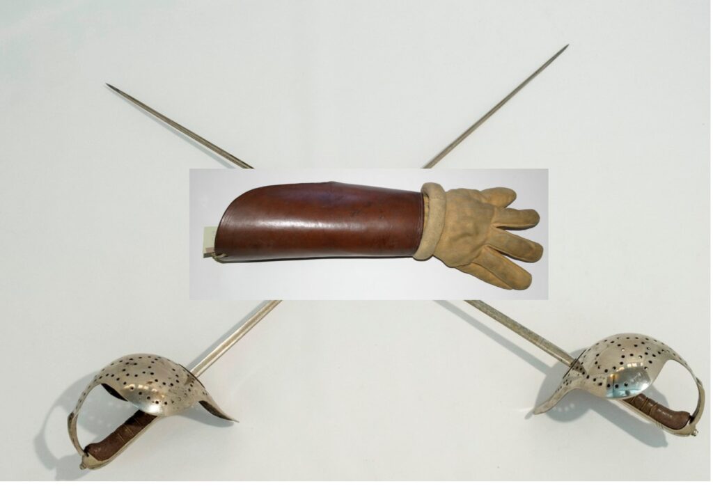 - Il guantone di sciabola, che proteggeva l’avambraccio fino al gomito.
