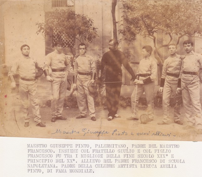 Posso aggiungere che il suo Maestro fu un certo “Professor Pinto”. Non conoscendone il nome, ho scavato un po’, ed è venuto fuori che i Pinto hanno dato alla scherma vari maestri, di cui vi propongo le foto tratte dall’archivio Mangiarotti.