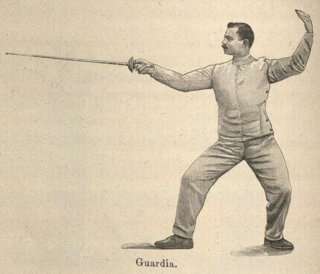 The guard of the past, let’s say that of Masaniello Parise to quote an Italian classic, was two feet wide. The weight of the body was fairly evenly distributed on the two supports, with a prevalence, dictated by prudence and tradition, of the weight on the back leg. Before that – look at the pictures – the weight was even more displaced on the back leg. Try, from that position, to take a step forward: it will be completely natural to raise the toe first, and then the heel, to advance.